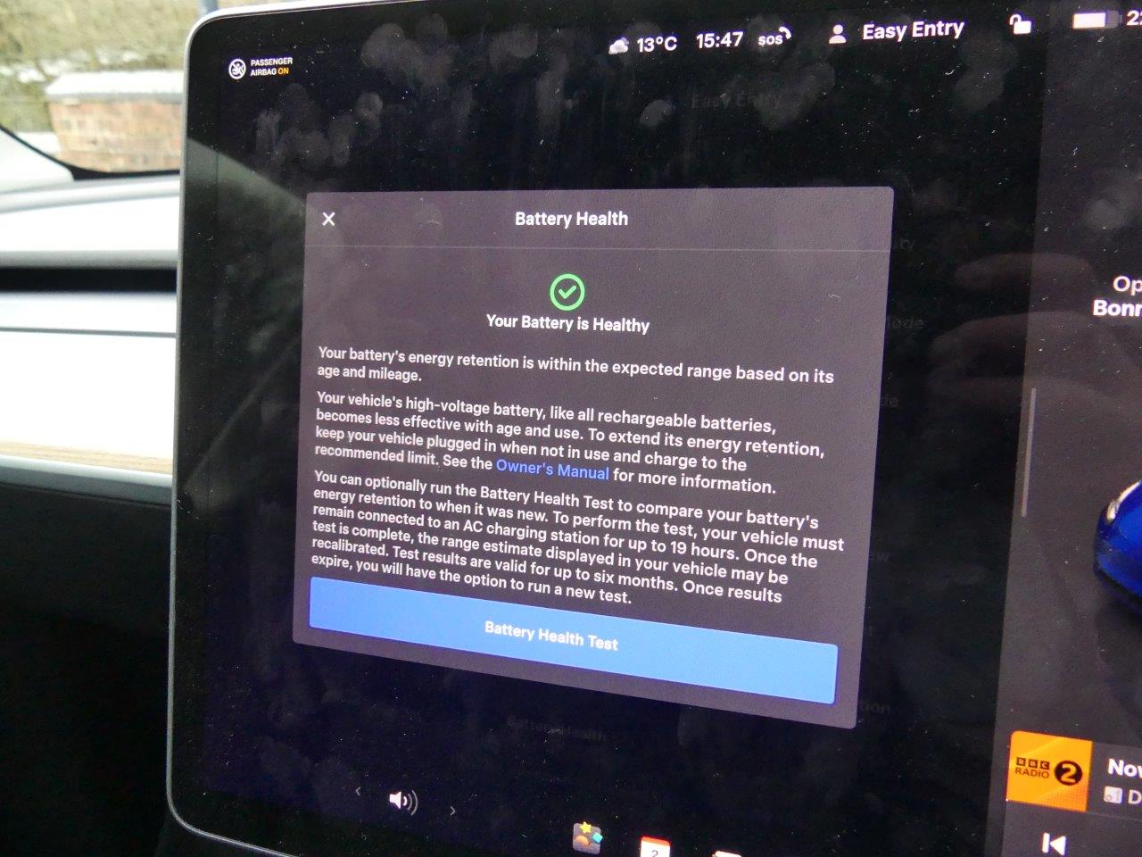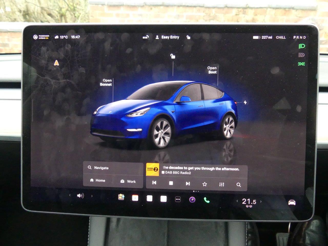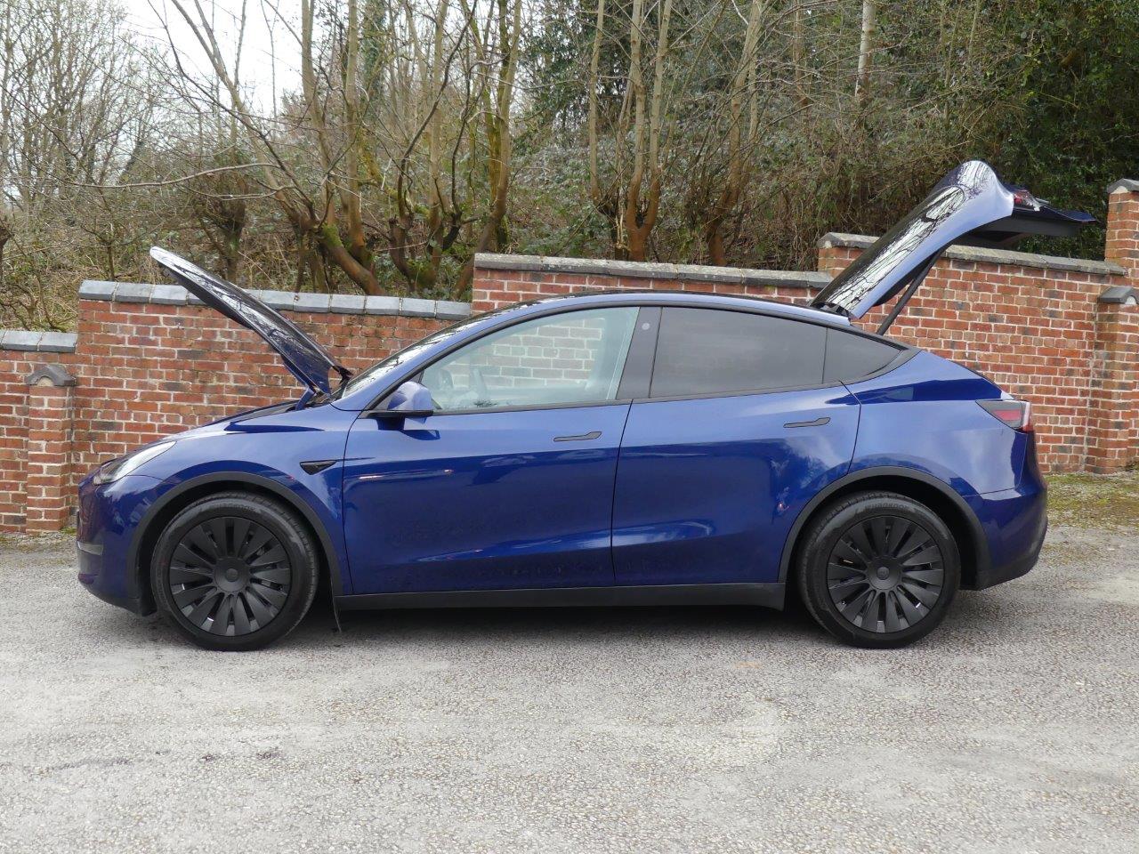 This 2022 Tesla Model Y Long Range presents an exceptional ownership opportunity, having been meticulously maintained by just one owner from new. As a fully electric vehicle, it boasts a substantial 85 kWh battery, offering an impressive maximum range of 331 miles when new. This Four Wheel Drive model is equipped with LED headlights for enhanced visibility, front parking sensors with assistance, and blind spot monitoring for added safety. Inside, you'll appreciate the comfort of a heated steering wheel and the convenience of music and media playback via Bluetooth. With an MOT valid until September 2026 and a low mileage of only 28,500 miles for its age, this Model Y is in excellent condition.