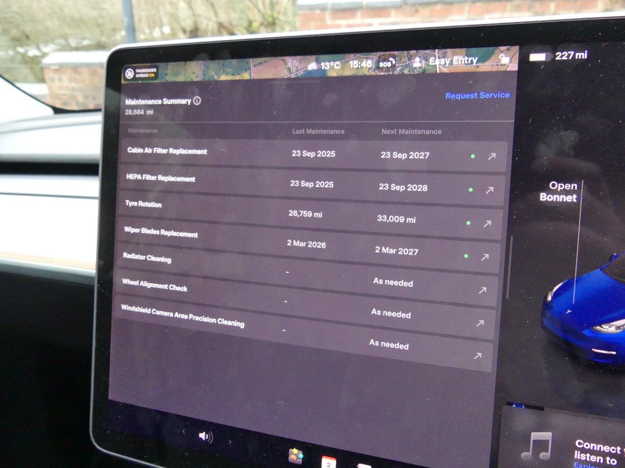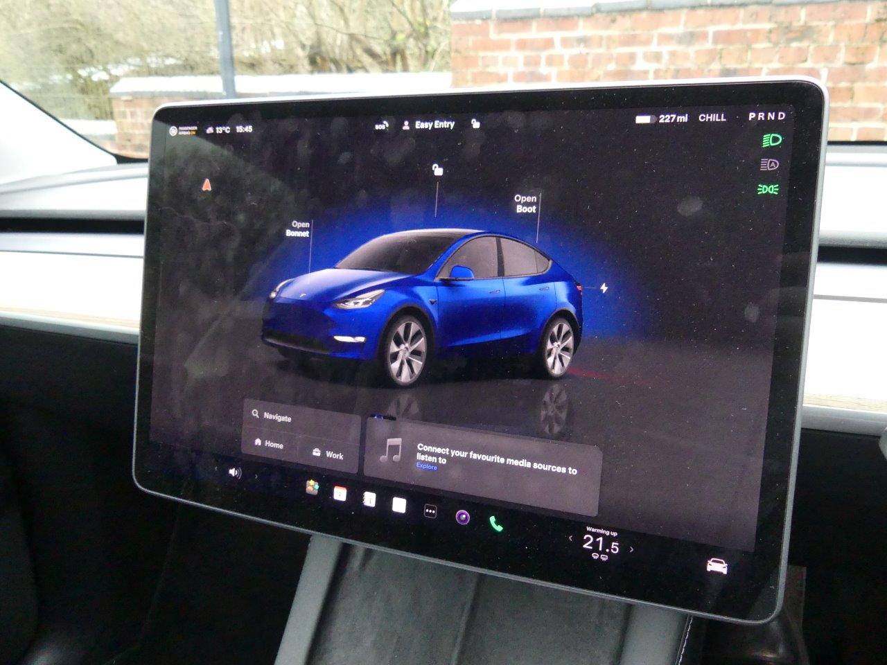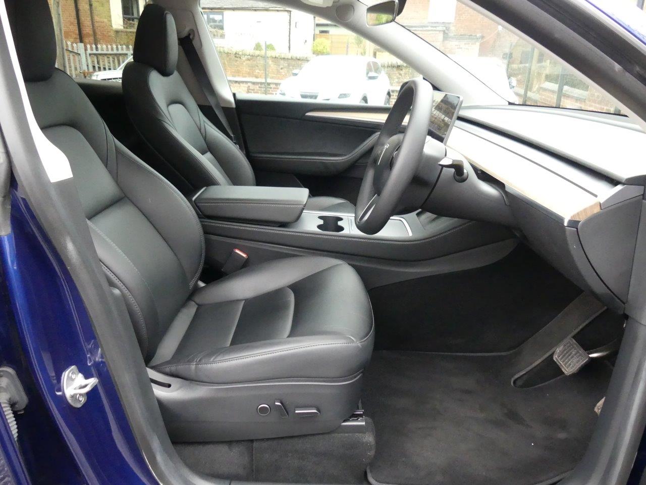 This 2022 Tesla Model Y Long Range presents an exceptional ownership opportunity, having been meticulously maintained by just one owner from new. As a fully electric vehicle, it boasts a substantial 85 kWh battery, offering an impressive maximum range of 331 miles when new. This Four Wheel Drive model is equipped with LED headlights for enhanced visibility, front parking sensors with assistance, and blind spot monitoring for added safety. Inside, you'll appreciate the comfort of a heated steering wheel and the convenience of music and media playback via Bluetooth. With an MOT valid until September 2026 and a low mileage of only 28,500 miles for its age, this Model Y is in excellent condition.