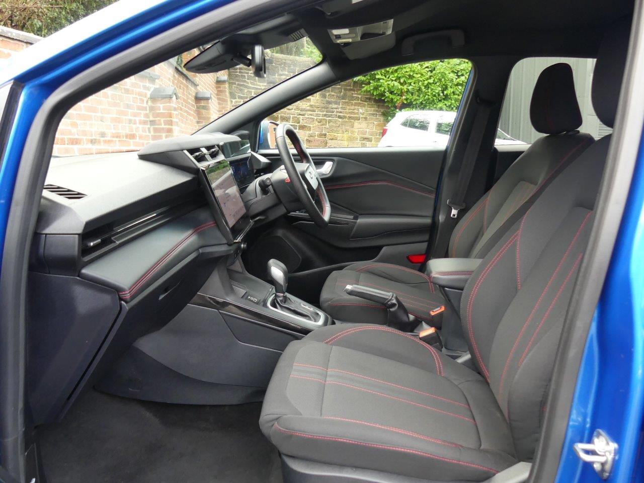 This 2024 Ford Puma ST-Line T is a superb example, having had only one owner since new. This stylish compact SUV is powered by an efficient 1.0 litre petrol hybrid engine, meeting Euro 6 emission standards and offering low CO2 emissions. Inside, you'll find a spacious cabin featuring Electronic Automatic Temperature Control for your comfort, and a large 12 inch landscape touchscreen display. This system seamlessly integrates with your smartphone through wireless Apple CarPlay and Android Auto, and includes Ford SYNC Navigation with FordPass Connect and Emergency Assist. For convenience and safety, it also boasts LED headlights with daytime running lights, a rear view camera, and rear parking sensors with parking assistance.